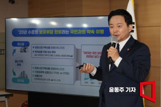 원희룡 국토교통부 장관이 22일 서울 종로구 정부서울청사에서 2023년 공동주택 공시가격 산정 결과를 브리핑을 하고 있다. 사진=윤동주 기자 doso7@