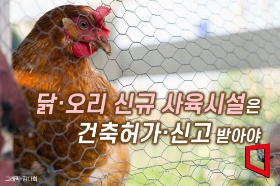 정부가 닭·오리 등 가금류 신규 사육시설의 경우 건축허가를 받거나 건축신고를 하도록 하는 방안을 추진한다. 앞서 지난해 비닐하우스 등 기존 가설건축물도 5년 뒤 일반건축물에서만 사육이 가능하도록 관련 시행령 개정을 추진했었지만, 과도한 규제라는 반발에 대상을 신규 사육시설로 한정해 재추진하는 것이다.