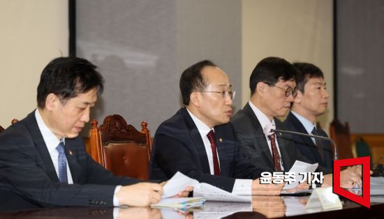 추경호 경제부총리가 23일 서울 중구 은행회관에서 열린 '비상거시경제금융회의'에 참석, 모두발언을 하고 있다. 이날 회의에는 추 부총리를 비롯해 이창용 한국은행 총재, 김주현 금융위원장, 이복현 금감원장이 참석했다. 사진=윤동주 기자 doso7@