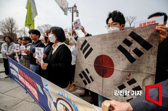 24일 서울 종로구 성균관대학교 명륜캠퍼스 정문 앞에서 성균관대 재학생 및 졸업생들이 윤석열 대통령 친일 굴욕외교 규탄하는 시국선언을 하고 있다.