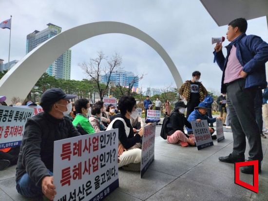 이들은 몸이 불편한 70대 어르신들까지 시청 입구 바닥에 앉아 “강기정 나와라”라고 외치며 집단행동을 하는 이유는 광주시가 수차례 요구에도 묵묵부답으로 일관하고 있는 점이라고 설명했다.