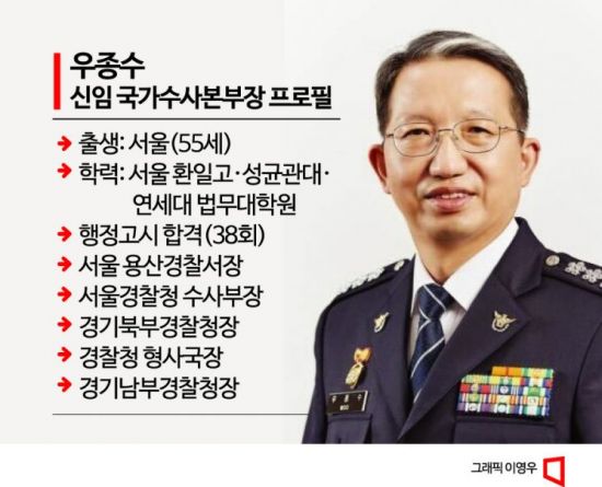 경찰청 국가수사본부의 2대 본부장으로 우종수(55) 경기남부경찰청장이 내정됐다. 정순신 변호사가 낙마한 지 한 달 만에 이뤄진 내부 발탁이다.