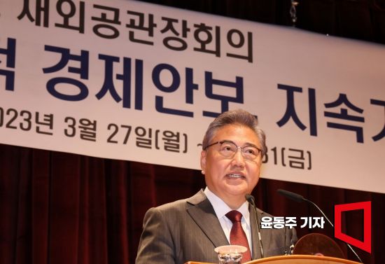 박진 외교부 장관이 27일 서울 종로구 외교부 청사에서 열린 '2023년도 재외공관장회의'에 참석, 인사말을 하고 있다. 사진=윤동주 기자 doso7@