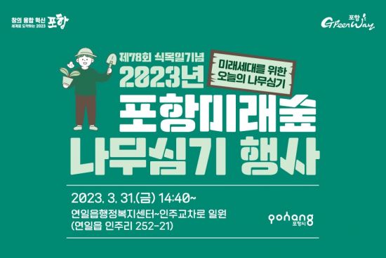 포항시는 제78회 식목일을 맞아 오는 31일 오후 2시 40분부터 연일읍 주민센터에서 인주교차로 일대에서 ‘포항미래숲 나무심기 행사’를 개최한다.