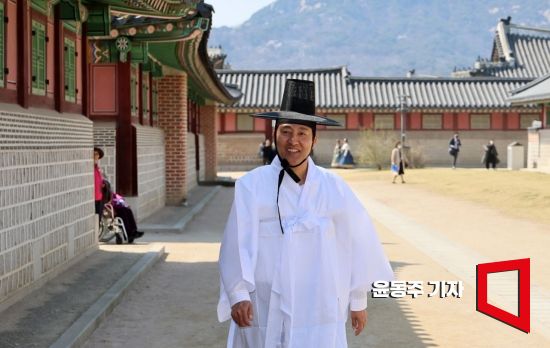 오세훈 서울시장이 27일 서울 경복궁 사정전에서 열린 퇴계선생 귀향길 재현행사에 참석, 선비옷을 입고 '퇴계 귀향길'을 걸어가고 있다. 사진=윤동주 기자 doso7@