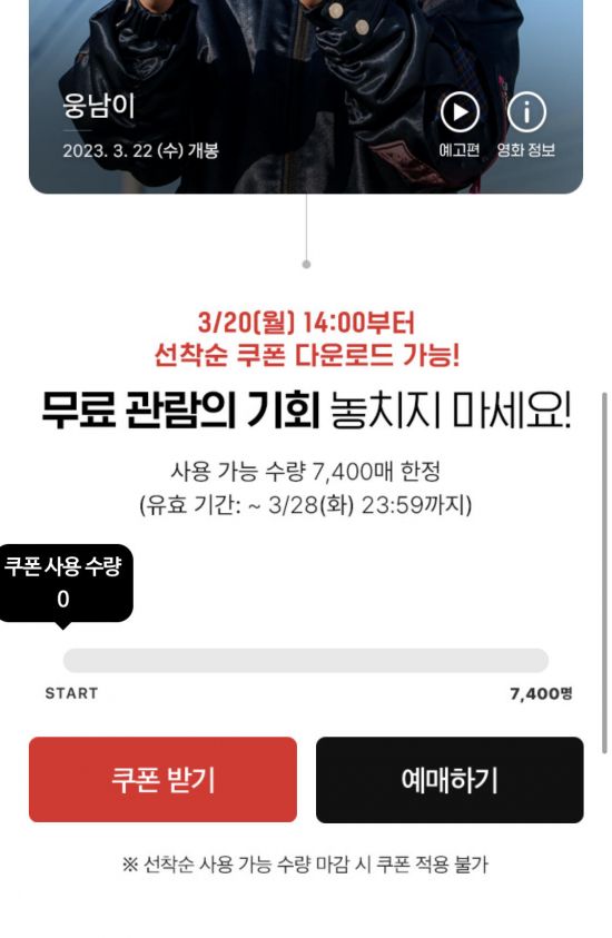 '웅남이' 무료입장권 3만6200장 발급