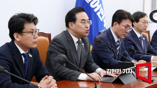 박홍근 더불어민주당 원내대표가 28일 서울 여의도 국회에서 열린 원내대책회의에서 발언하고 있다. 사진=김현민 기자 kimhyun81@