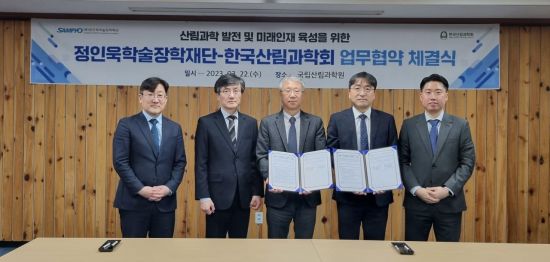 이번 협약은 양 기관이 '2022년 산림 Pioneer 육성 장학사업'을 기획·운영하며 산림분야 기술 연구장학생을 지원한 것이 계기가 됐다. 향후 국내 산림과학 발전에 이바지할 인재 양성과 우수학술 및 실질연구 장려라는 두 마리 토끼를 잡는 것이 목표다.