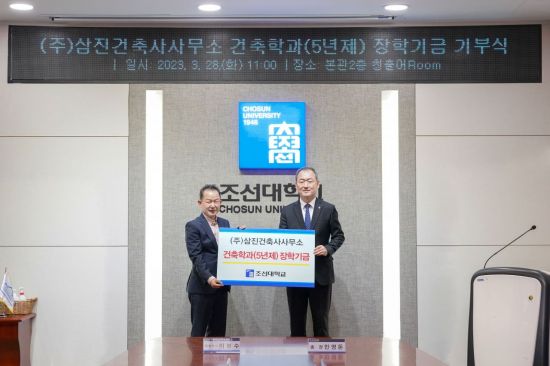 조선대학교(총장 민영돈)는 이봉수 ㈜삼진건축사사무소 대표이사가 건축학과(5년제)에 발전기금 300만원을 기부했다고 28일 밝혔다.