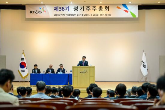 KT&G는 이날 오전 11시 30분께부터 대전시 대덕구 본사 인재개발원에서 주주총회를 열었다. 원래는 오전 10시 개최 예정이었으나 일찌감치 주총 장소를 찾은 소액주주들로 출석 주식과 주주 수 집계에 시간이 소요되며 1시간 반가량 개최가 지연됐다.
