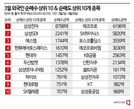 3월 들어 외국인 순매수 1위 삼성전자