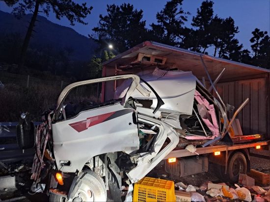 29일 새벽 5시 36분께 남해고속도로 1 지선 순천 방향 14.9㎞ 지점을 달리던 2.5t 냉동탑차와 25t 트레일러가 충돌해 30대 탑차 운전자가 현장에서 숨졌다.