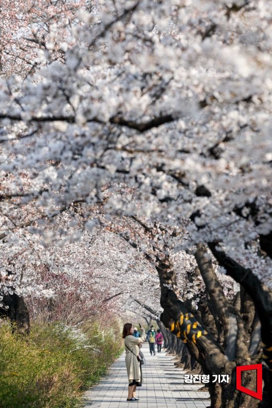 전국 벚꽃 개화가 예년보다 빨라진 29일 서울 여의도 윤중로에 벚꽃이 꽃망울을 터트리고 있다.