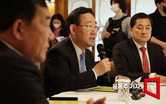 주호영 국민의힘 원내대표가 29일 서울 종로구 총리공관에서 열린 양곡관리법 관련 당정협의회에 참석, 발언을 하고 있다. 사진=윤동주 기자 doso7@