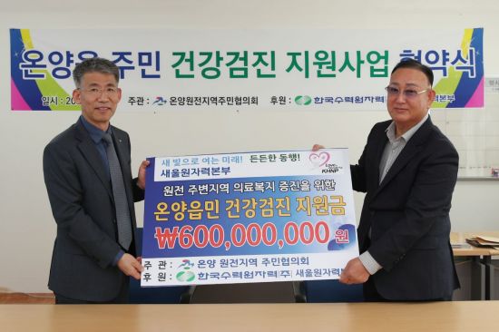 새울본부는 29일 울주군 온양읍 태화1, 2리 마을회관에서 온양 원전지역주민협의회(회장 최종규)와 주민 건강검진 지원 협약을 체결하고 6억원을 지원하기로 했다.