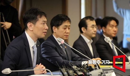 이복현 금융감독원장이 31일 서울 중구 프레스센터에서 열린 금융지주회장 간담회에 참석, 발언을 하고 있다. 이번 간담회는 김주현 금융위원장과 이복현 금융감독원장, 진옥동 신한금융지주 회장, 임종룡 우리금융지주 회장, 함영주 하나금융지주 회장, 이석준 NH농협금융지주 회장, 양종희 KB금융지주 부회장, 김광수 은행연합회장이 참석했다. 사진=윤동주 기자 doso7@