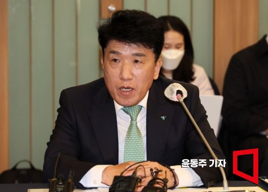 함영주 하나금융지주 회장이 31일 서울 중구 프레스센터에서 열린 금융지주회장 간담회에 참석, 발언을 하고 있다. 이번 간담회는 김주현 금융위원장과 이복현 금융감독원장, 진옥동 신한금융지주 회장, 임종룡 우리금융지주 회장, 함영주 하나금융지주 회장, 이석준 NH농협금융지주 회장, 양종희 KB금융지주 부회장, 김광수 은행연합회장이 참석했다. 사진=윤동주 기자 doso7@