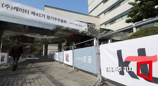 31일 서울 서초구 KT연구개발센터에서 KT 주주총회가 삼엄한 경비속에 열리고 있다. 사진=윤동주 기자 doso7@