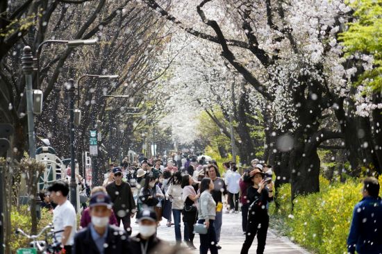 주말을 맞아 가족, 연인, 친구들과 축제현장을 찾은 주민들이 벚꽃나무 아래서 사진 찍고 거닐며 봄의 낭만을 만끽했다.