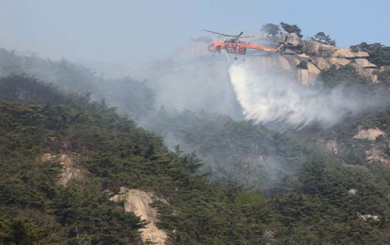 2일 오전 11시 53분께 서울 종로구 부암동 인왕산 8부 능선에서 불이 났다. 낮 한때 불이 커지면서 소방당국은 인력·장비를 총동원했고 오후 5시께 큰 불길이 잡히면서 대응 단계를 1단계로 낮춰 잔불을 정리했다.