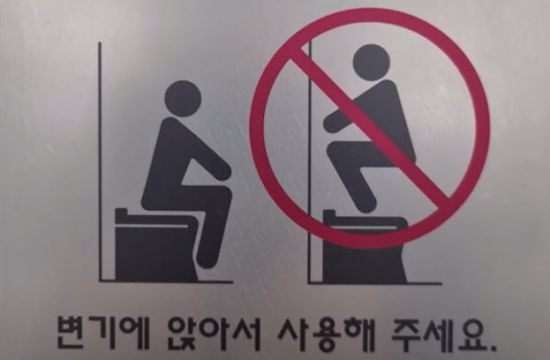 25일 SBS 등에 따르면 최근 인천국제공항 화장실에는 '변기 위에 올라가서 앉지 말라'는 직관적인 그림과 함께 ‘변기에 앉아서 사용해달라’는 안내문이 부착됐다. 안내문은 한글, 영어, 중국어, 일본어 등 총 4개 국어로 작성된 것으로 전해졌다.