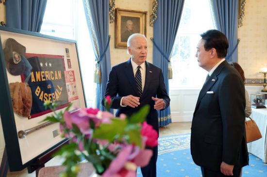 바이든 대통령은 야구를 좋아하는 윤 대통령에게 미국 프로야구 메이저리그 워싱턴 내셔널스의 홈구장인 내셔널 파크가 그려진 야구공, 미국 대통령의 인장이 새겨진 금색 가죽 야구공이 든 유리 상자를 선물했으며, 필라델피아 필리스 로고가 박힌 대형 액자에 배트와 글로브, 야구공으로 구성된 빈티지 야구 수집품도 전달했다.