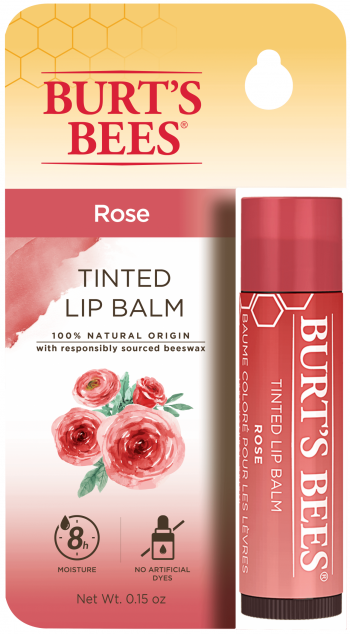 버츠비의 틴티드 립밤 로즈는 이름 그대로 꽃에서 영감을 얻은 컬러로, 입술에 장밋빛 컬러를 구현할 수 있다. 발색은 단독으로 발라도 충분히 생기 있는 입술을 만들어주며, 레이어드로 활용하기에도 좋다는 평이다. 또한 깔끔한 메이크업을 원하는 남성들에게도 인기가 좋은 제품이다. 색감뿐 아니라 비즈왁스 성분과 꽃 왁스와 같은 자연유래 식물성 오일을 사용해 입술 건강을 지키기에도 제격이다.