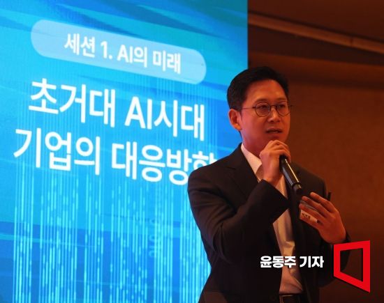 아시아경제 주최로 17일 서울 중구 롯데호텔에서 열린 '2023 아시아미래기업포럼'에서 배경훈 LG AI연구원장이 'AI의 미래'라는 주제로 특별강연을 하고 있다. 사진=윤동주 기자 doso7@