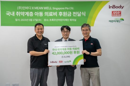 인바디와 민웰 엔터프라이즈는 초록우산어린이재단에 국내 취약계층 아동 의료비 후원금 4200만원(3만1598달러)을 기부했다고 18일 밝혔다.