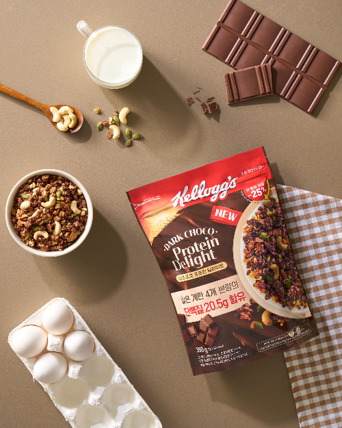 다크 초코 프로틴 딜라이트' 기존 켈로그 프로틴 그래놀라 대비, 맛과 영양을 모두 업그레이드하여 먹는 즐거움을 극대화한 제품이다. '딜라이트'는 '딜리셔스(Delicious)'와 '라이트(Light)'의 합성어로 건강한 달콤함과 낮은 당 함량으로 맛있고 가볍게 프로틴을 즐길 수 있다는 의미를 담았다.