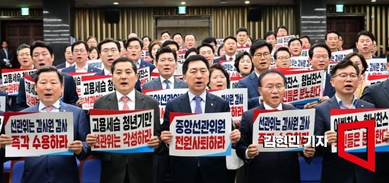김기현 국민의힘 당대표도 이날 국회에서 진행된 확대간부회의를 통해 “아빠찬스, 형님찬스에 이어 고속승진 의혹까지 선거관리인지 자녀 경력 관리하는 것인지 분간할 수 없는 선관위의 작태가 드러났는데도 민주당은 선관위의 감사원 감사 거부 결정을 옹호하기까지 한다”며 “민주당의 이런 반 상식·불공정·내로남불·패거리정치에 국민들이 분노하는 만큼 거꾸로 집권여당의 역할과 책임이 더욱 막중하다”고 강조했다.