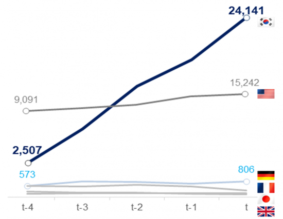 주요 국가별로 최근 5회기 동안 발의법안 추이를 보면, 미국(9091건→1만5242건), 독일(573건→806건), 영국(167건→191건)은 다소 늘고, 일본(273건→155건), 프랑스(563건→330건)는 감소했다. 이를 고려하면 우리나라 발의법안 증가세는 이례적인 수준이라고 대한상의는 설명했다. 21대 국회도 출범 3년만에 20대 국회 발의법안의 90%(2만1763건)를 넘어 증가세를 이어가고 있다.