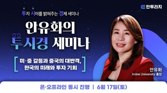 세미나는 사이다경제 안투라지 홈페이지에서도 동시 생중계될 예정이다. 안유화 교수와 직접 Q&A를 나눌 수 있는 현장 세미나의 경우 60명 선착순으로 모집한다. 안투라지 홈페이지를 통해 신청할 수 있다.