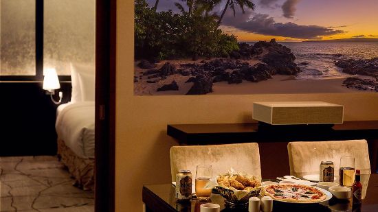 서머 나잇 패키지는 롯데호텔이 지난해에 이어 두 번째로 LG전자와 협업해 출시한 패키지로, 'LG 시네빔(HU715Q 시리즈)'이 설치된 객실에서 온라인 동영상 서비스(OTT)인 넷플릭스, 디즈니플러스 등을 별도 로그인 없이 즐길 수 있는 상품이다. LG 시네빔은 4K UHD 해상도의 스크린 100(화면 254㎝) 크기 초대형 화면을 한 뼘 거리에서 만들어내는 초단초점 방식의 프로젝터다. 주변 밝기와 재생하는 영상에 맞춰 광원 출력을 자동으로 조절해 한낮에도 선명한 영상을 즐길 수 있다.