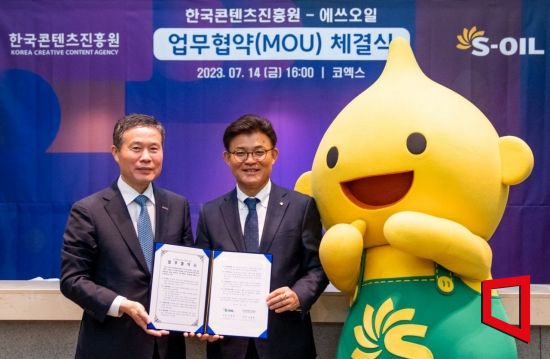에쓰오일은 14일 서울 강남구 삼성동 코엑스에서 열린 '캐릭터 라이선싱 페어 2023'에서 한국콘텐츠진흥원과 국내 콘텐츠 산업 동반성장 지원을 위한 업무협약 양해각서(MOU)를 체결했다고 17일 밝혔다.