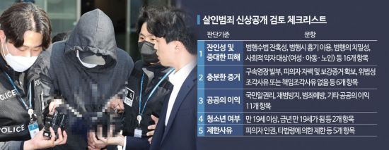 ◆국민 대다수 “신상공개 확대 필요”= 국민권익위원회가 최근 국민 7474명을 대상으로 실시한 설문조사에서 응답자의 96.3%가 "강력범죄자 신상공개 확대가 필요하다"고 답했다. 응답자들은 신상공개 확대가 필요한 이유로 ‘피해자 보호 및 범죄 재발 방지’(41.8%)를 첫손가락에 꼽았다. 현행법상 신상정보는 범행 수단이 잔인하고 중대한 피해가 발생한 특정강력범죄의 피의자가 그 죄를 범했다고 믿을 만한 충분한 증거가 있을 때 공개할 수 있다. 피의자가 청소년이거나 영아살해죄 등은 특정강력범죄에 속하지 않아 신상공개 자체가 불가능하다. 경기 수원에서 영아를 살해한 모친도 이런 법적 허점 때문에 신상공개를 면했다.