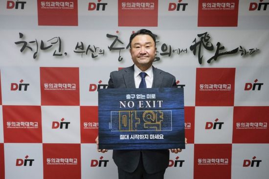 동의과학대학교 김영도 총장이 마약 중독의 위험성과 경각심 일깨우기 위해 ‘NO EXIT 마약 예방 릴레이 캠페인’에 동참했다.
