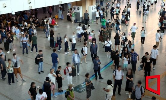35도를 웃도는 폭염이 연일 이어지는 가운데 4일 오후 서울역 대합실에 폭염으로 인해 열차운행이 지연될 수 있다는 안내문이 붙어 있다. 사진=조용준 기자 jun21@