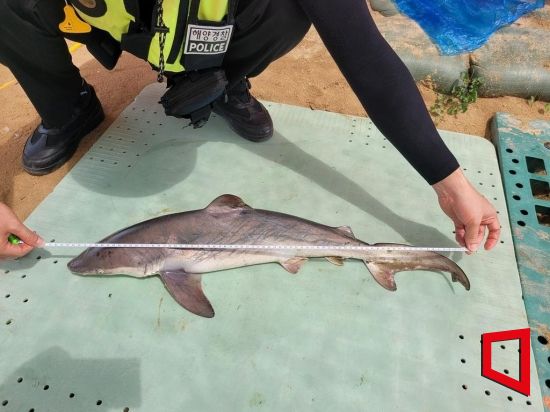 7일 인천해양경찰서에 따르면 전날 오전 11시 30분께 중구 무의도 하나개해수욕장 갯벌 내 해파리 방지막 인근에서 죽은 상어가 발견됐다. 상어는 길이 82㎝, 둘레 34㎝ 크기였다.