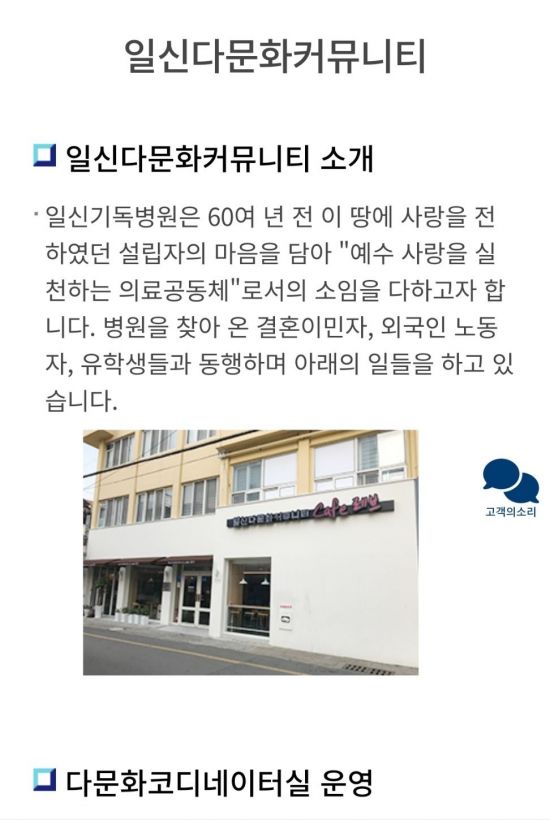 병원 관계자는 “도움이 필요한 외국인 환자나 보호자가 연락하면 필요할 경우 일신다문화커뮤니티를 통해 통역 상담을 거쳐 다각도로 지원방법을 모색할 계획”이라고 말했다.