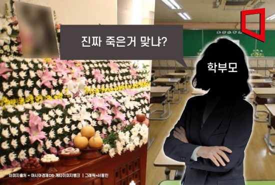 A씨는 이 교사의 회신이 없자 다음 날 학교로 찾아왔다. 이에 동료 교사는 "'갑작스럽게 작고하셨다'고 말씀드려도 안 믿으셨다. 굉장히 난폭하셨다. 거짓말하지 말라고 하셨다"고 당시를 회상했다.