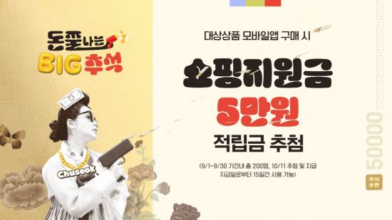 KT알파 쇼핑이 추석을 앞두고 쇼핑지원금을 지급하는 ‘돈쭐나는 BIG 추석’ 프로모션을 진행한다고 4일 밝혔다.