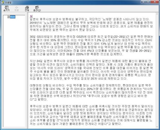 공격자는 먼저 'project.chm'이라는 이름의 윈도우 도움말 파일(.chm)을 유포했다. 유포에는 오염수 처리와 관련한 내용을 담은 이메일 등을 이용했을 것으로 추정된다. 사용자가 무심코 해당 파일을 실행하면 ‘후쿠시마 오염수 방류’와 ‘노재팬’ 캠페인과 관련한 현황을 담은 기사 내용이 나타난다.