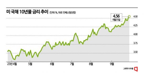 지난달부터 채권 금리가 치솟자 안전자산에 자금이 몰린 결과다. 채권 금리 급등으로 인한 차입 비용 상승도 주식시장의 자금 유입 유입을 제한했다. 글로벌 채권금리 벤치마크 역할을 하는 미 10년 만기 국채 금리는 이날 오후 8시50분께 뉴욕 채권시장에서 4.559%를 기록하고 있다. 이는 글로벌 금융위기 이전인 2007년 10월 이후 16년 만에 가장 높은 수준이다. 미 10년 만기 국채 수익률은 주택담보대출부터 기업대출에 이르기까지 모든 차입 비용의 기준이 돼 투자자에게 민감한 지표다. 통화정책에 민감한 2년물 금리도 5.14%선을 웃돌았다.