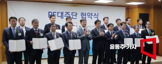 27일 서울 중구 명동1가 은행연합회관에서 열린 PF대주단 협약식에 참석한 김주현 금융위원장과 이복현 금감원장 등 주요 참석자들이 협약식 후 기념촬영을 갖고 있다. 이날 행사는 김주현 금융위원장, 이복현 금융감독원장, 김철주 금융채권자조정위원회 위원장, 김광수 은행연합회장, 정희수 생명보험협회장, 정지원 손해보험협회장, 정완규 여신금융협회장, 오화경 저축은행중앙회장, 이창화 금융투자협회 전무 등이 참석했다. /사진=윤동주 기자 doso7@