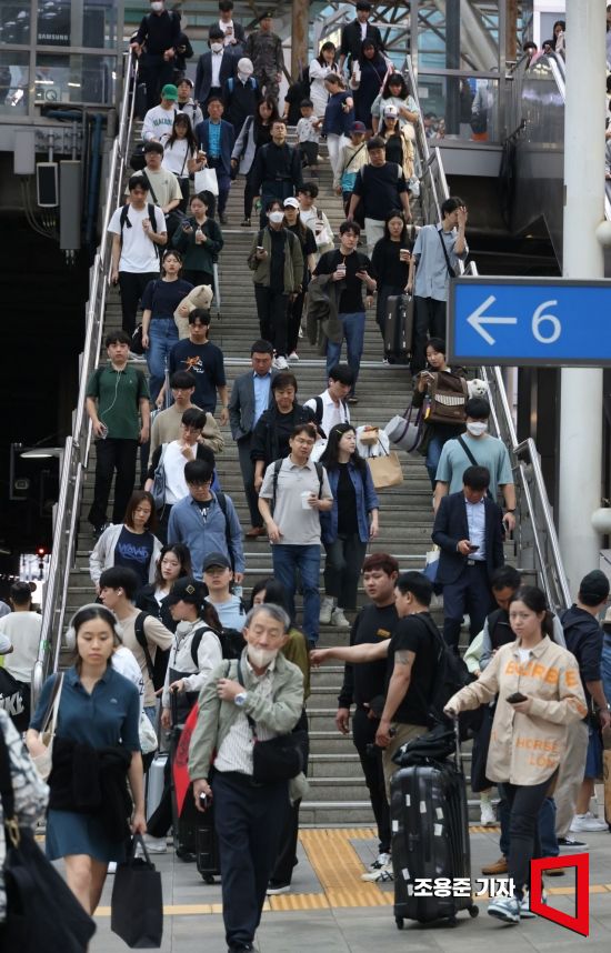 추석 연휴를 하루 앞둔 27일 오전 서울 중구 서울역에는 고향으로 향하는 귀성객들이 열차에 탑승하기 위해 이동하고 있다. 사진=조용준 기자 jun21@