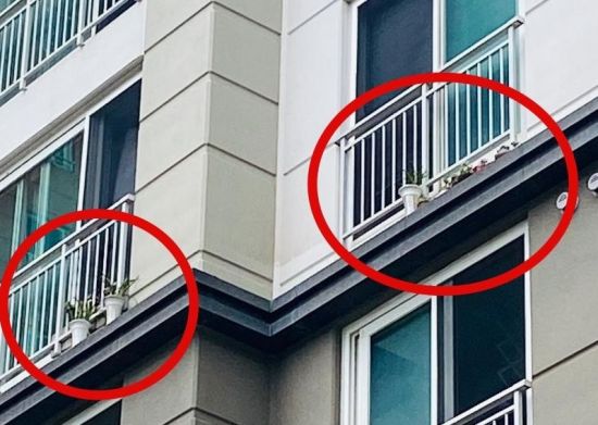 고정장치 없이 아슬아슬하게 놓인 화분들이 자칫 주민 머리 위로 떨어지기라도 하면 큰 사고가 날 수 있겠다고 판단해서다. 김 씨가 찍은 사진을 보면 해당 아파트 5층 집 창문 아랫부분과 맞닿은 외벽 장식재 위로 다양한 크기의 화분이 놓여있었다.