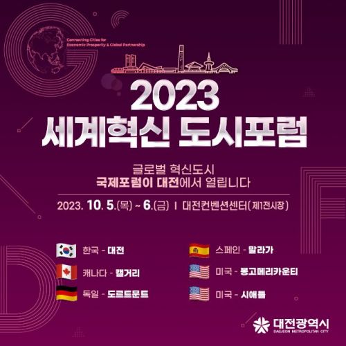 대전시는 5일~6일 대전컨벤션센터에서 ‘2023 세계혁신도시포럼’을 연다고 4일 밝혔다.