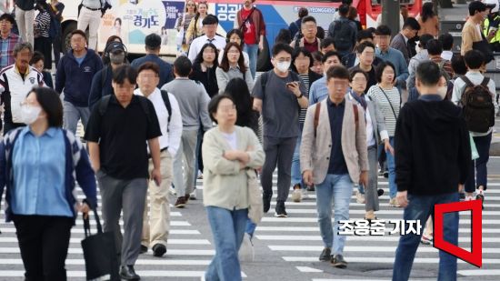 추석과 개천절로 이어진 6일간의 연휴를 마치고 출근하는 시민들이 4일 오전 서울 광화문사거리에서 횡단보도를 건너고 있다. 사진=조용준 기자 jun21@