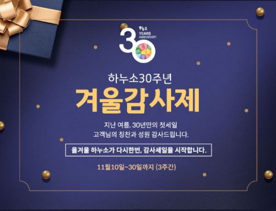 정통한식 프리미엄 패밀리 레스토랑 '하누소'가 10일부터 30일까지 3주간 '30주년 겨울감사제'를 진행한다고 9일 밝혔다.